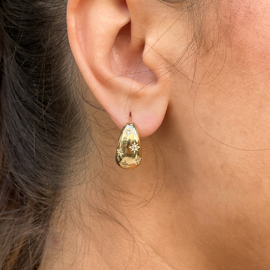 Sunshine CZ Moon & Star Charm Huggie Hoop Earrings | 10mm