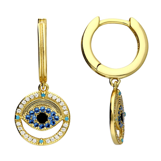 Sunshine CZ Evil Eye Charm Huggie Hoop Earrings | 12.5mm