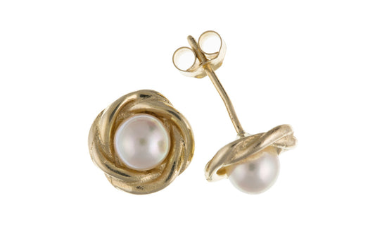 9ct Gold Freshwater Pearl Knot Earrings | 8mm