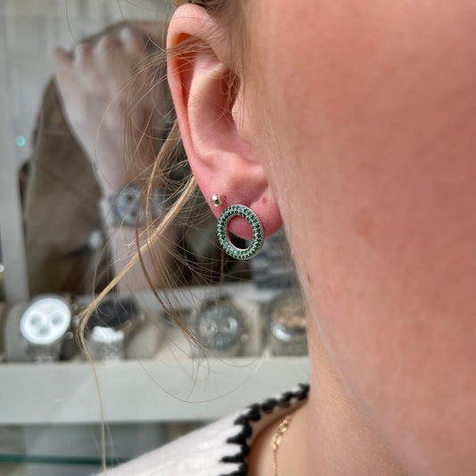 Silver Deco Drop Earrings | Black Rhodium & Emerald Green