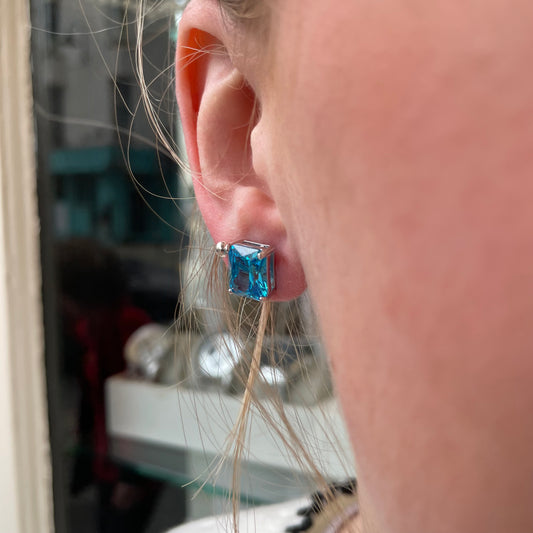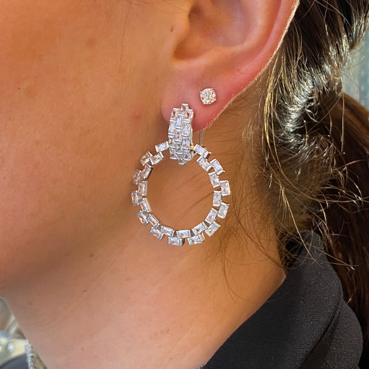 18ct White Gold Sapphire & Diamond J Hoop Earrings