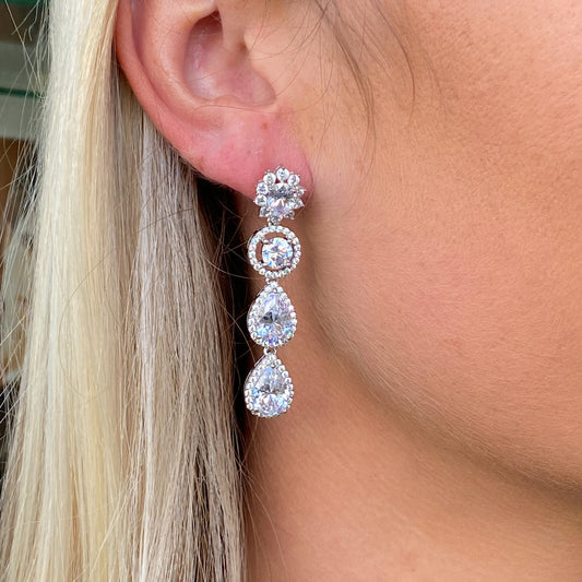 9ct Gold CZ Studded Teardrop Stud Earrings