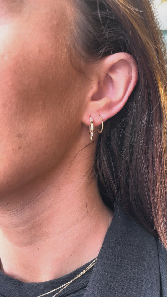 9ct Gold CZ Spiked Huggie Hoop Earrings | 15mm