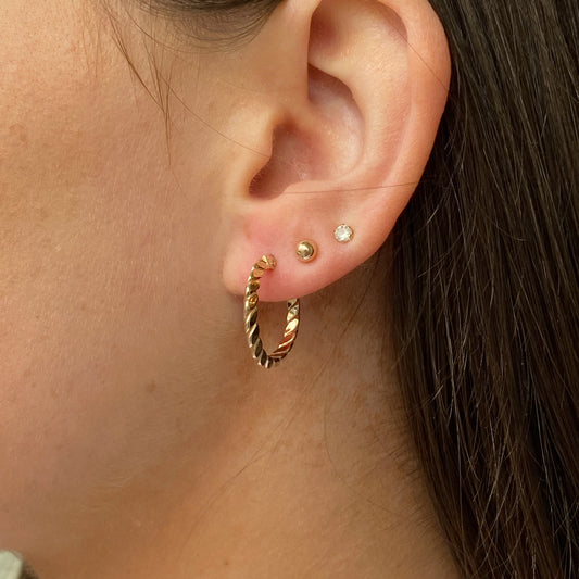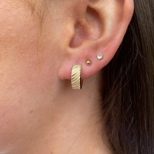 9ct Gold Groovy Textured Huggie Hoop Earrings | Reversible