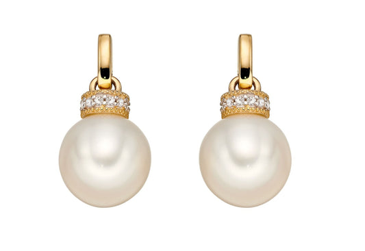 9ct Gold Diamond & Freshwater Pearl Drop Earrings