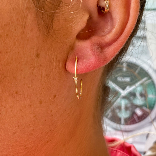 18ct Gold Diamond J Hoop Earrings | 0.05ct