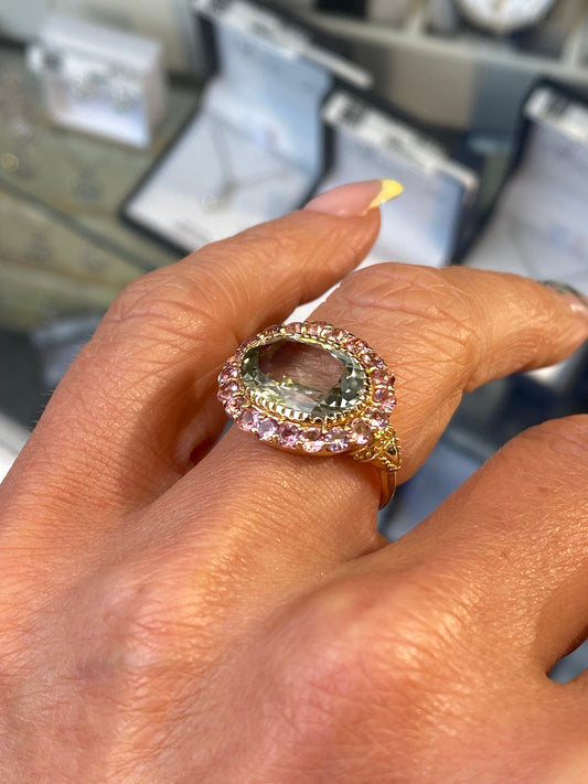 9ct Gold Green Amethyst & Pink Tourmaline Ring