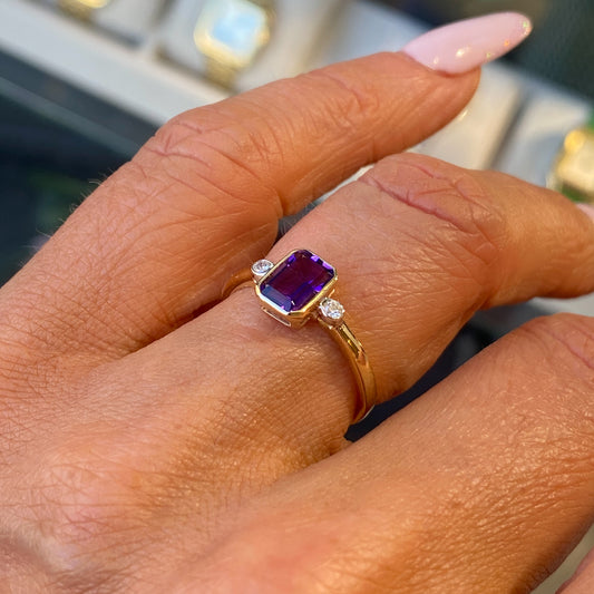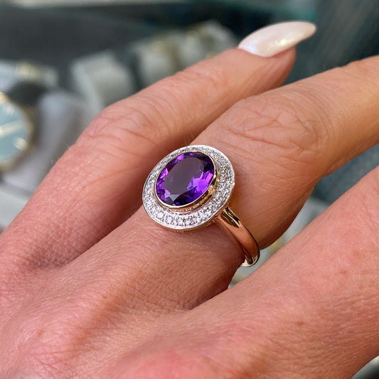 9ct Gold Amethyst & Pink Tourmaline Ring