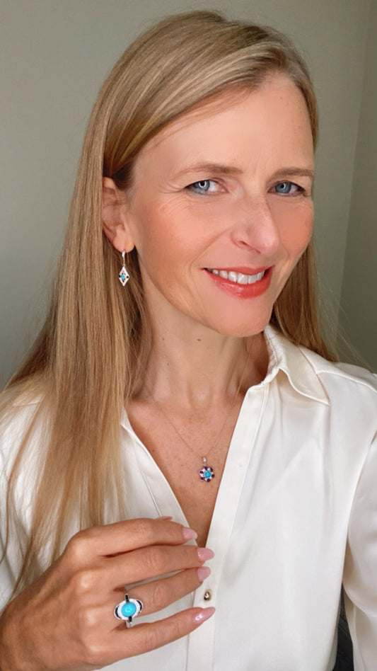 9ct Gold Turquoise, Amethyst & Diamond Pendant Necklace