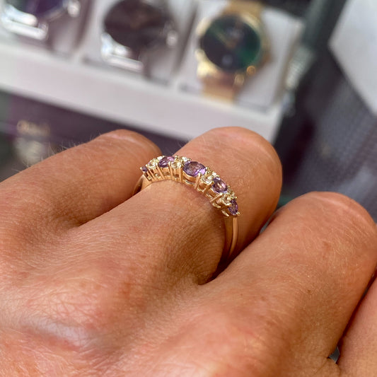 9ct Gold Graduated Eternity Ring - Amethyst & White Topaz