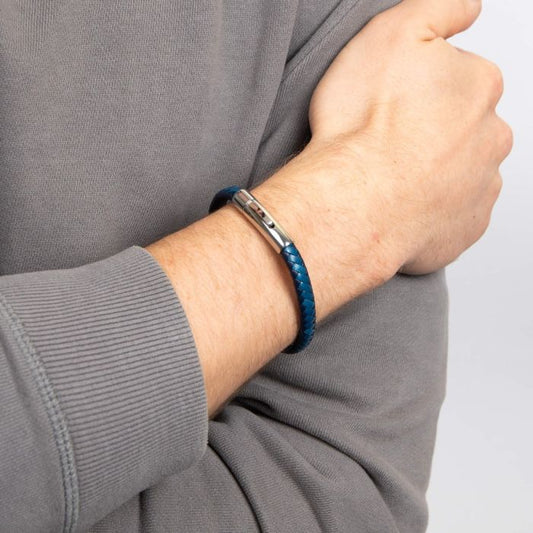 FRED BENNETT Grey & Navy Braided Leather Wristband