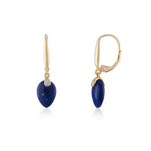9ct Gold Lapis Lazuli & Diamond Drop Earrings