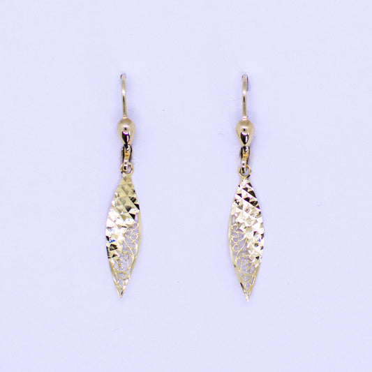 9ct Gold Diamond Cut & Filigree Drop Earrings | German Wires
