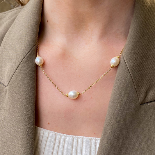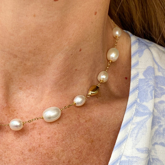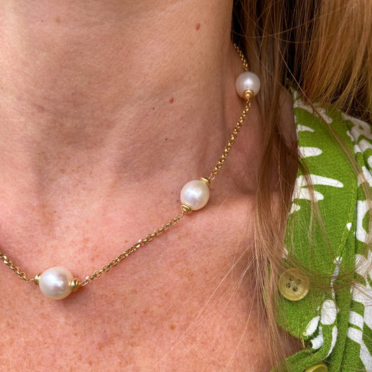 18ct Gold Fantasy Freshwater Pearl & Garnet Necklace