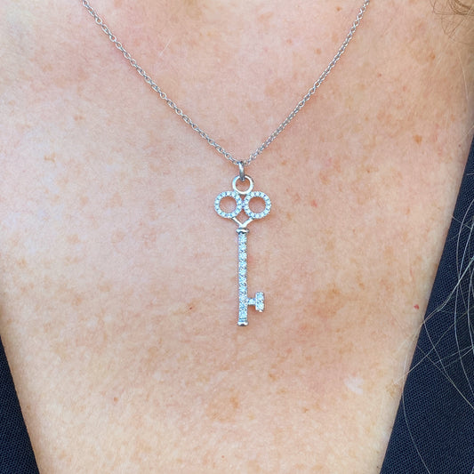 18ct White Gold Diamond Trefoil Key Necklace | 0.26ct