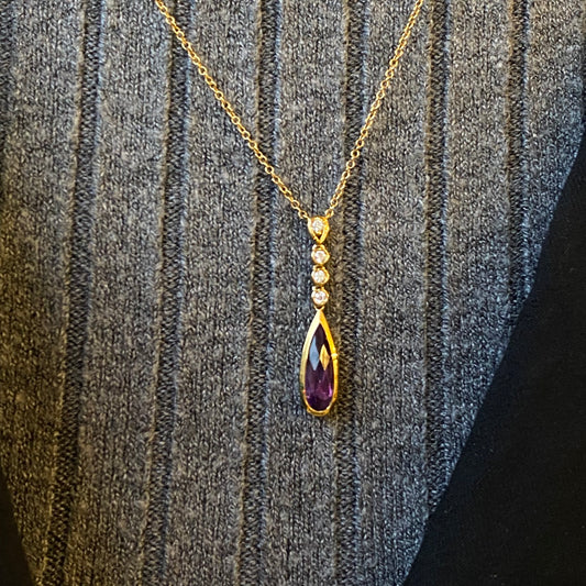 9ct Gold Blue Topaz & Diamond Geometric Necklace