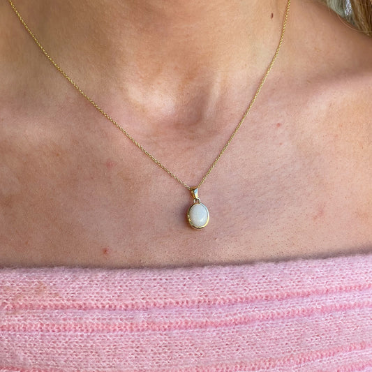 9ct Gold Freshwater Pearl & CZ Pendant Necklace