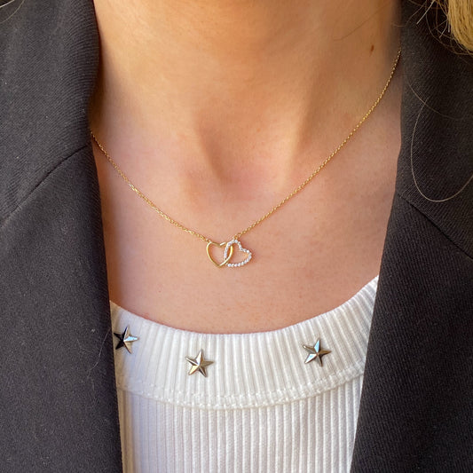 9ct Gold CZ Heart Unity Necklace