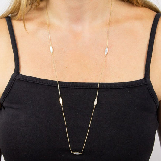9ct Gold Mother of Pearl Navette Long Necklace