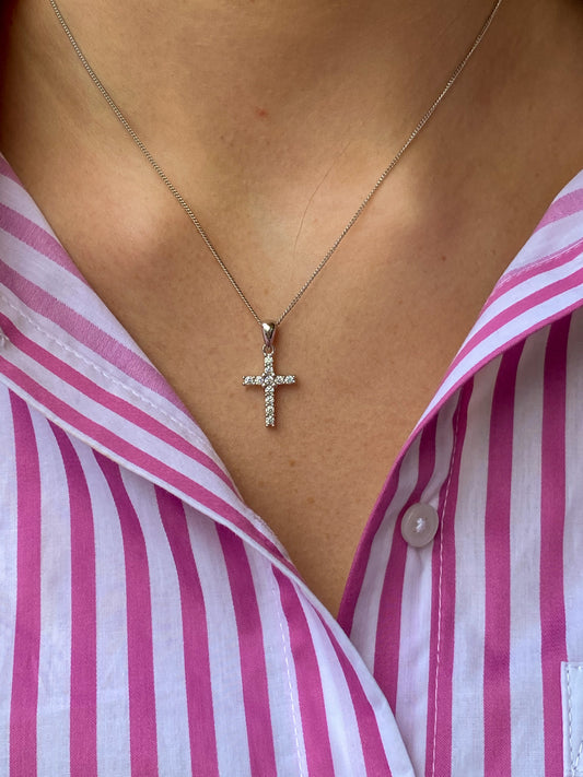 Silver Classic CZ Cross Necklace - Medium