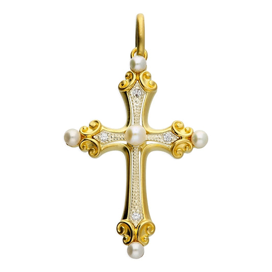9ct Gold Freshwater Pearl & CZ Pendant Necklace