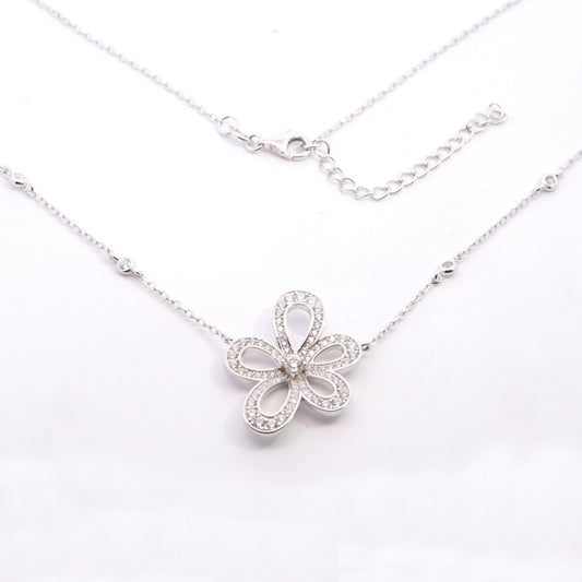 Silver Pearl & CZ Halo Earring & Necklace Set