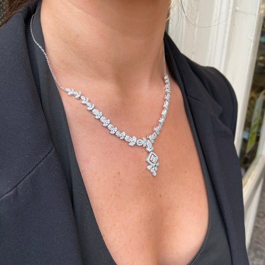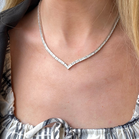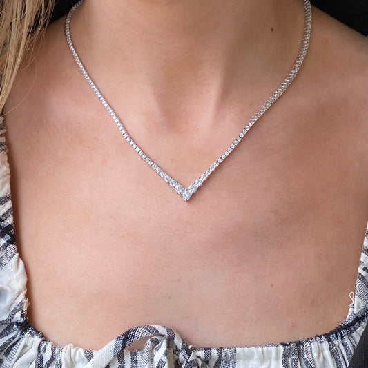 Silver V-Neck CZ Tennis Necklace | 42cm