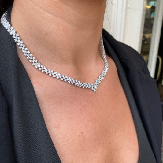 Silver V-Neck CZ Tennis Necklace | 43cm