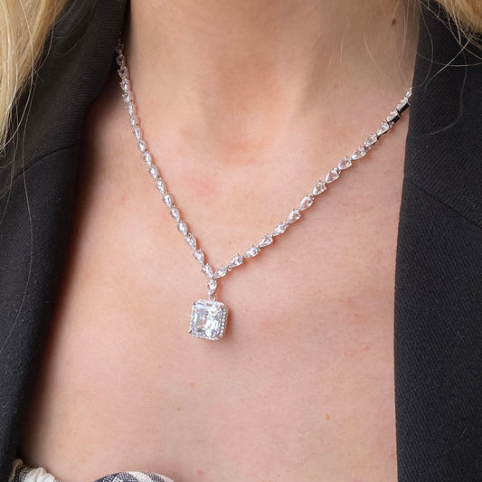 Silver Emerald Cut Tennis Necklace