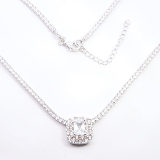 Silver Emerald Cut CZ Centre Tennis Necklace