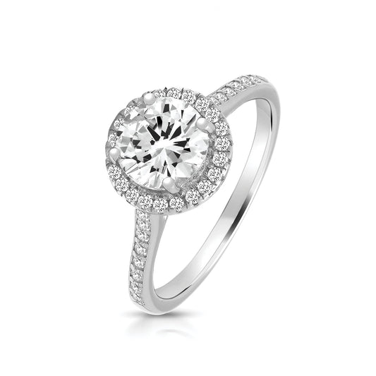 9ct White Gold CZ Trilogy Halo Ring with CZ Shoulders