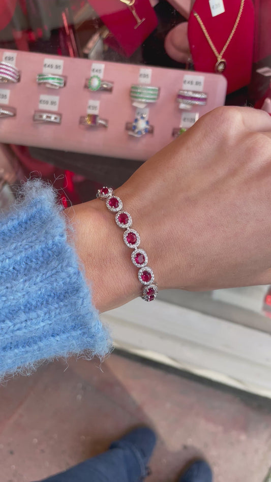 Silver Oval CZ Garland Bracelet | Ruby Red
