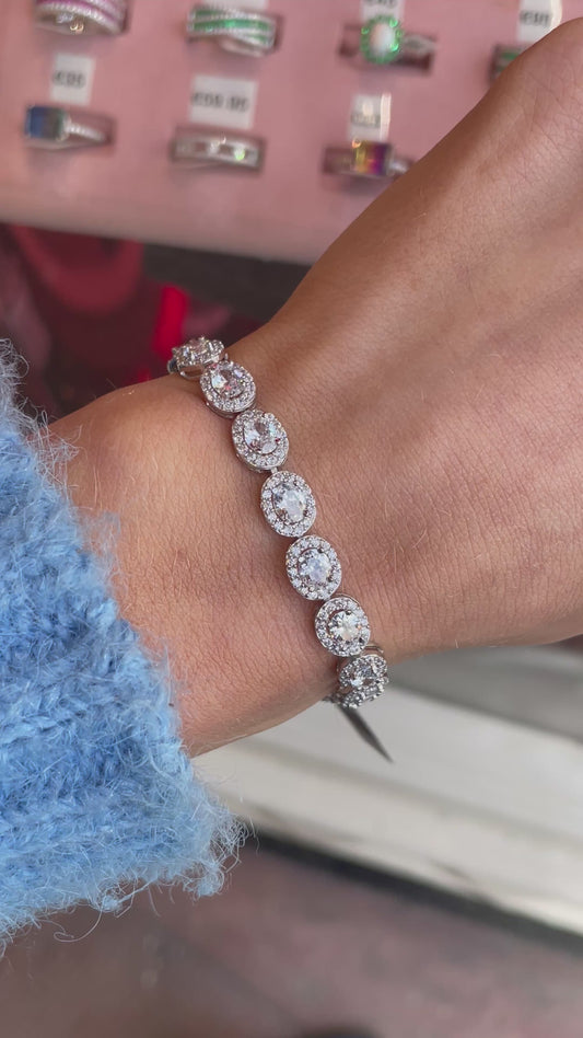 Silver Aqua CZ Garland Bracelet | 17+3cm