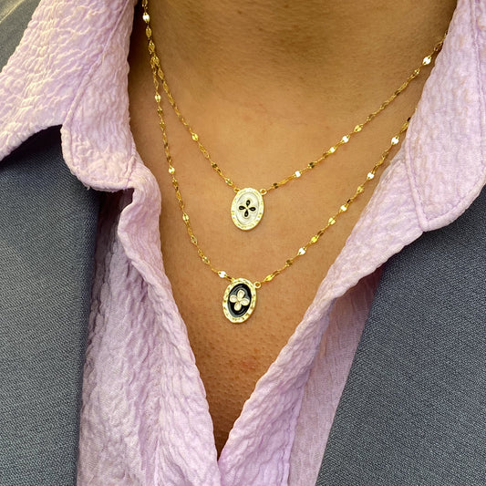 Sunshine Black & White Enamel Double Disc Necklace | 40-45+5cm
