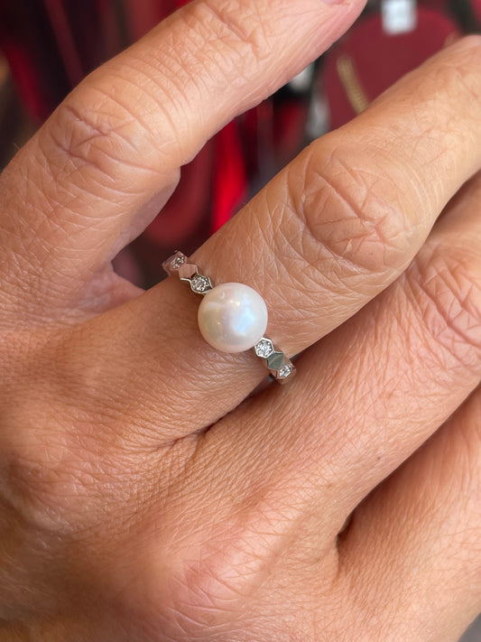 Silver Freshwater Pearl & CZ Ring| 8mm