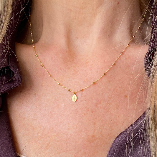 9ct Gold Miraculous Medal Pendant & Chain | Small Medium