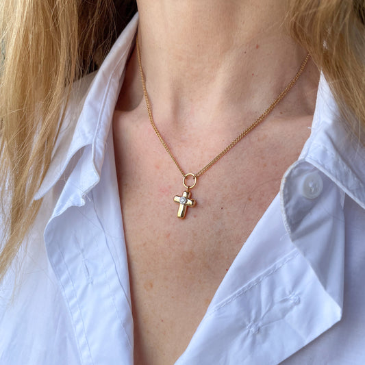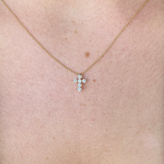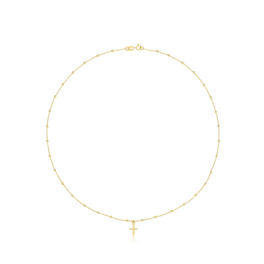 18ct Gold Pretty Diamond Bubble Cross Necklace - Mini