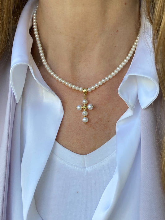 18ct Gold Freshwater Pearl Mini Cross Pendant