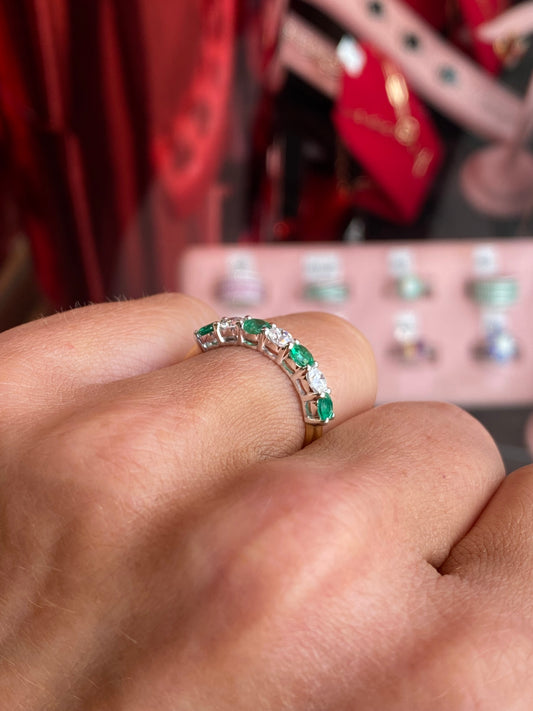 18ct Gold Seven Stone Emerald & Diamond Eternity Ring