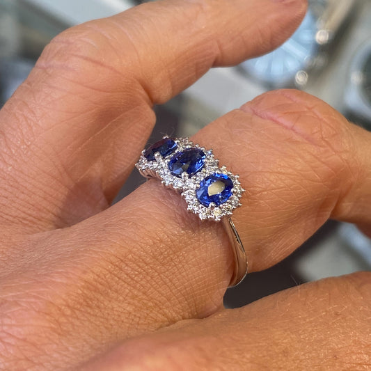 18ct White Gold Sapphire & Diamond Trilogy Ring