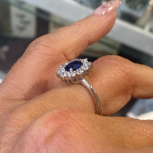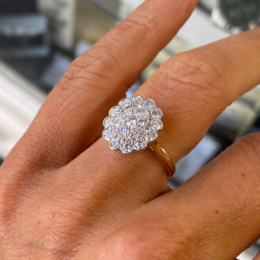18ct Gold Oval Cluster Diamond Ring | Certified