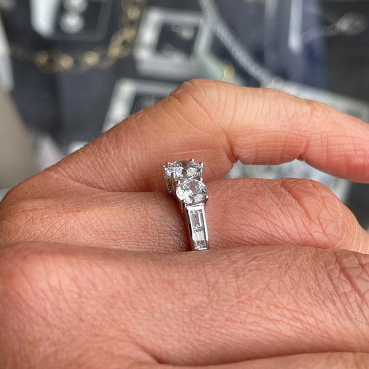 9ct White Gold CZ Trilogy Ring with Baguettes