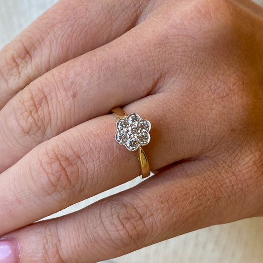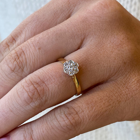 18ct Gold 0.23ct Diamond Flower Cluster Ring