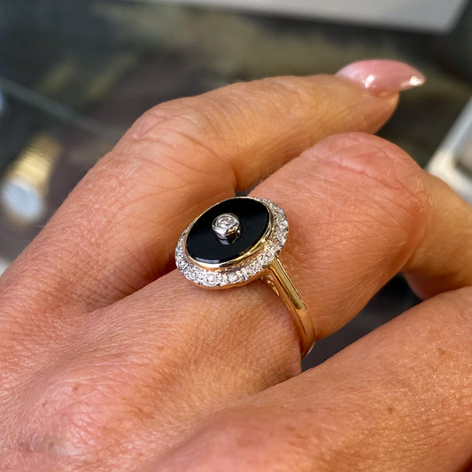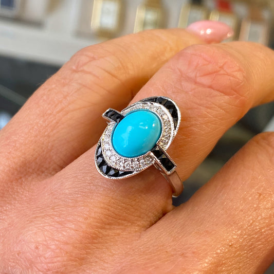 18ct White Gold Turquoise, Onyx & Diamond Ring