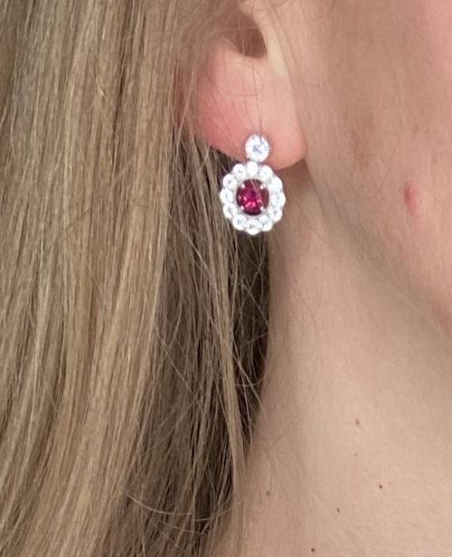 Silver CZ Long Drop Earrings - Oval & Pear Cuts