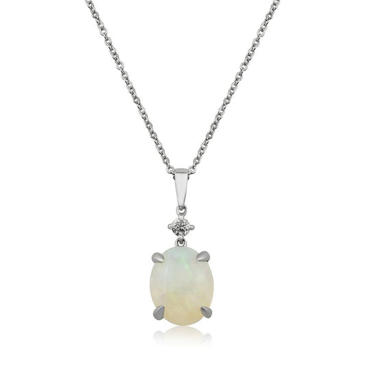 9ct White Gold Gem Opal & Diamond Pendant Necklace