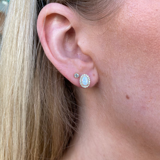 9ct Gold Oval Opalique & CZ Halo Stud Earrings
