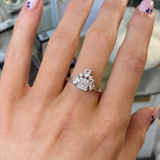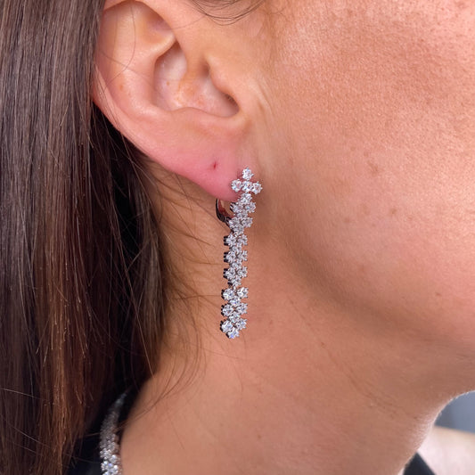 Silver CZ Double Halo Hexagon Earring and Necklace Set