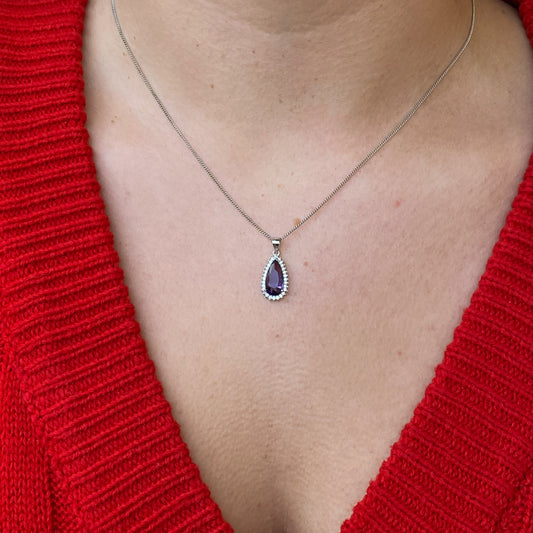 Silver CZ Pear Halo Earring & Necklace Set | Amethyst