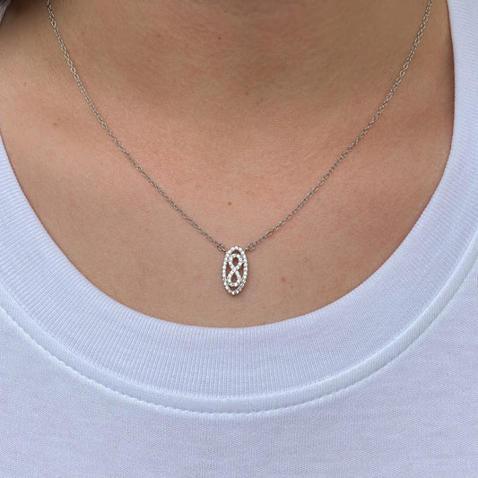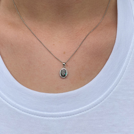 Silver CZ Oval Halo Earring & Necklace Set | Mystic Topaz